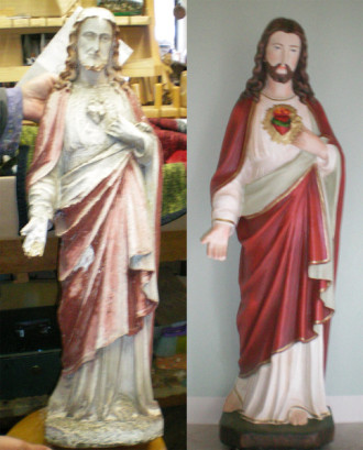 Herz Jesu vor und nach umfangreicher Restauration mit neuer Fassung